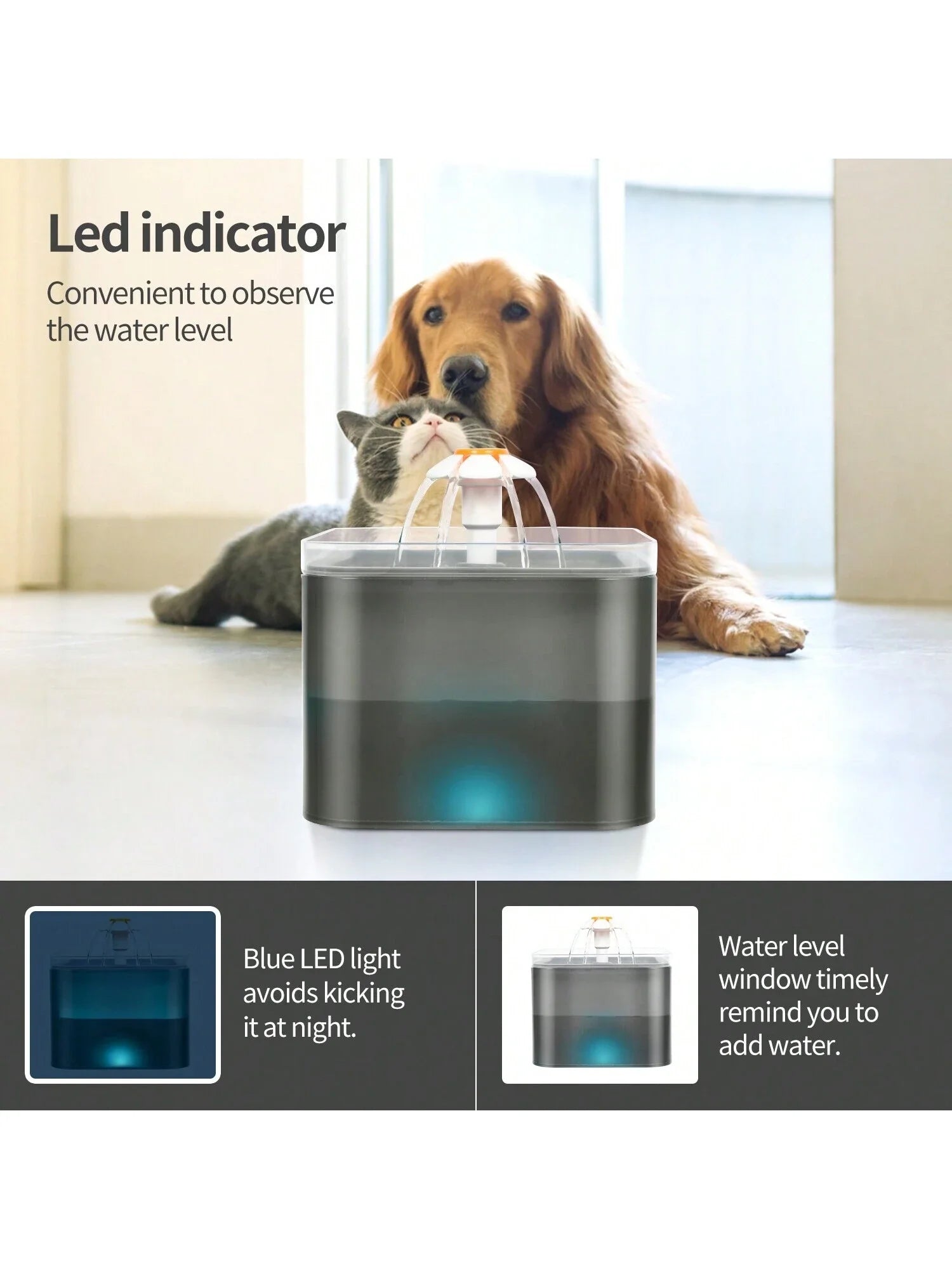 1. La fuente de agua ultra silenciosa para gatos con LED de 2 litros es la manera perfecta de brindarle a tu felino agua fresca y filtrada. Este bebedero para mascotas se alimenta por USB y cuenta con una función automática para facilitar su uso.