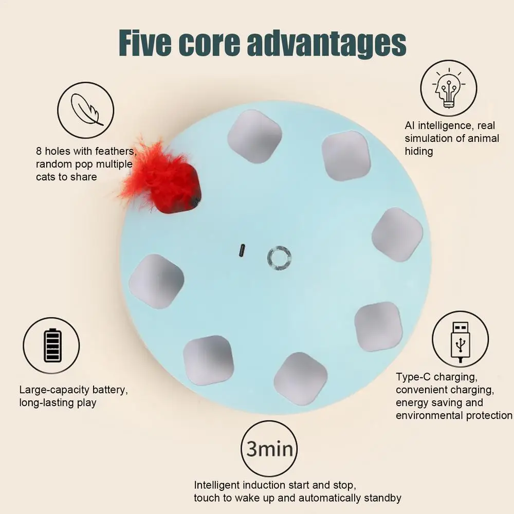 2.Intelligent Toy for Cats: Equipped with intelligent sensing technology, this toy adjusts the rhythm of the game and includes a timed shutdown function, ensuring it's safe for your cat to play