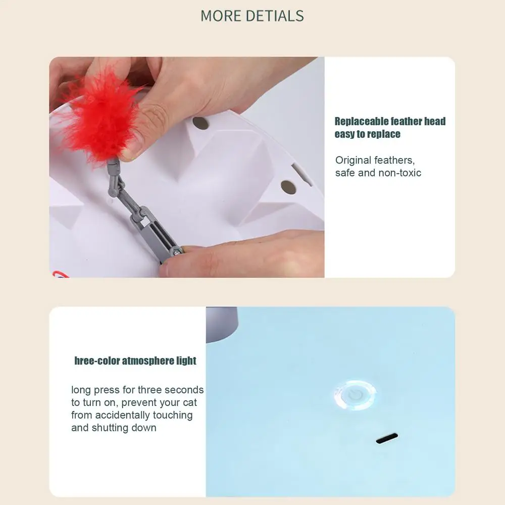 3.Long Working Life Span: Convenient and fast charging meets your cat's long-term play needs; simply connect to the power adapter or USB interface with the Type-C interface for hours of continuous fun