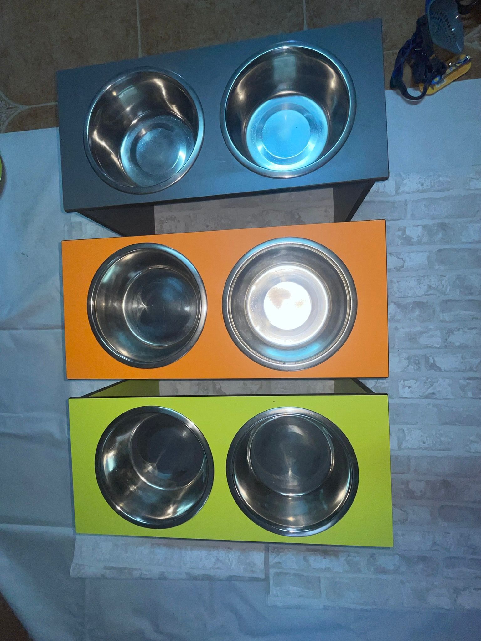 ¡Dale a tu mascota la comodidad que se merece! Nuestros comederos elevados vienen en tres vibrantes colores: gris elegante, naranja brillante y verde lima. Cada soporte cuenta con dos tazones de acero inoxidable extraíbles, ideales para comida y agua.