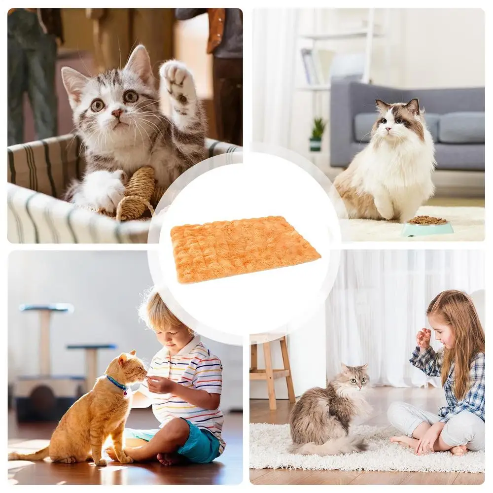 1. Material acogedor: confeccionada con tela de felpa de alta calidad y alto peso, nuestra alfombra para gatos garantiza una buena retención de calor con su fino terciopelo de felpa, que ofrece un tacto delicado, suave y cómodo.
