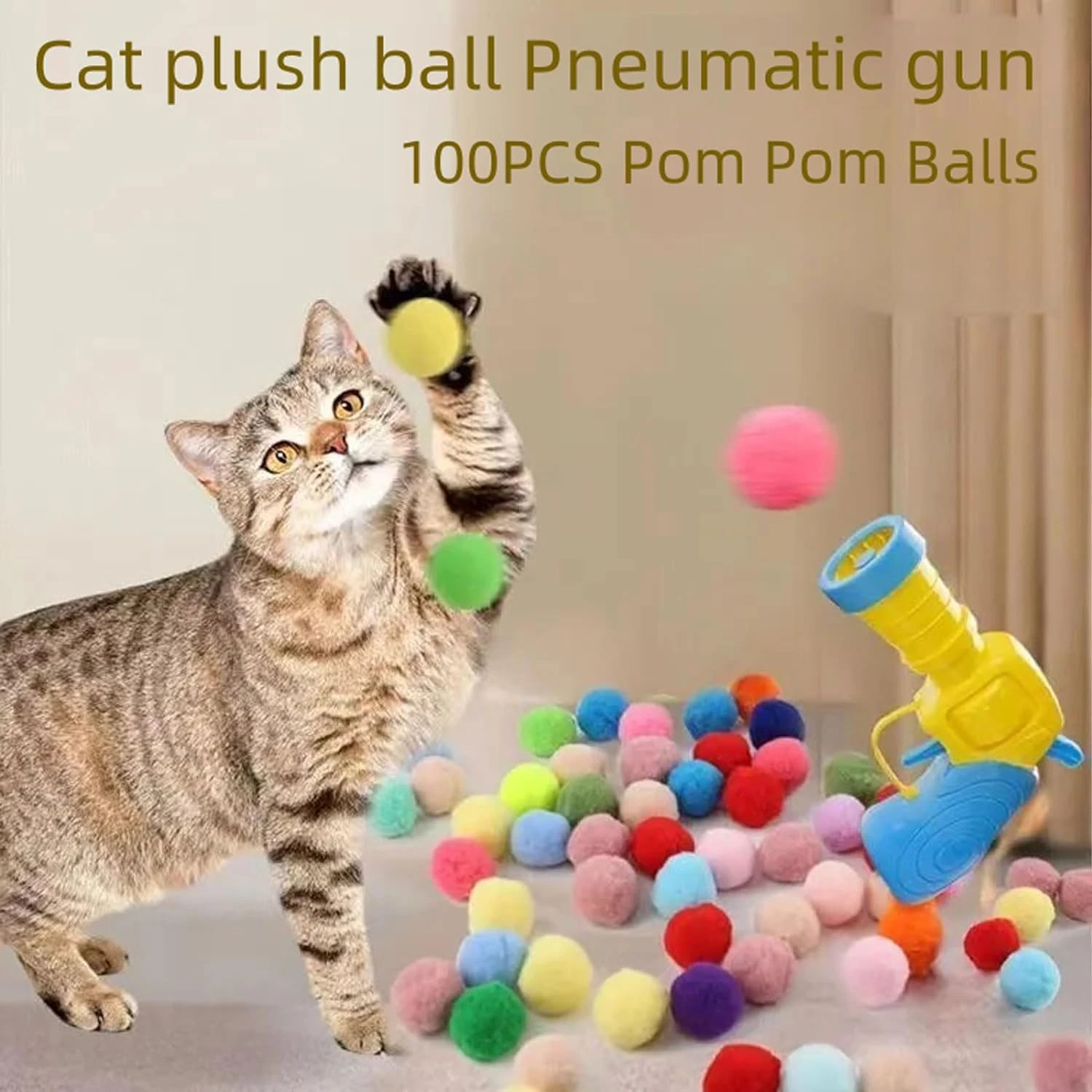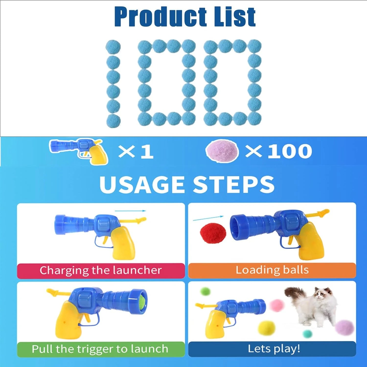 Emocionante e interactivo lanzador de juguetes de alta energía para gatos: atractiva ayuda de entrenamiento con 100 bolas de pompones para estimular el ejercicio del gato.