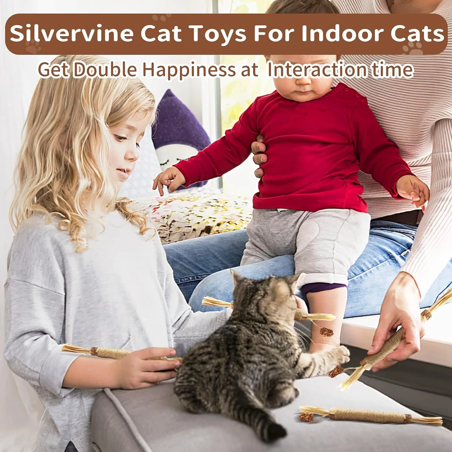 Emocionante juego de juguetes masticables Matatabi Silvervine de alta calidad para gatos de interior: palitos masticables naturales ideales para la limpieza dental.