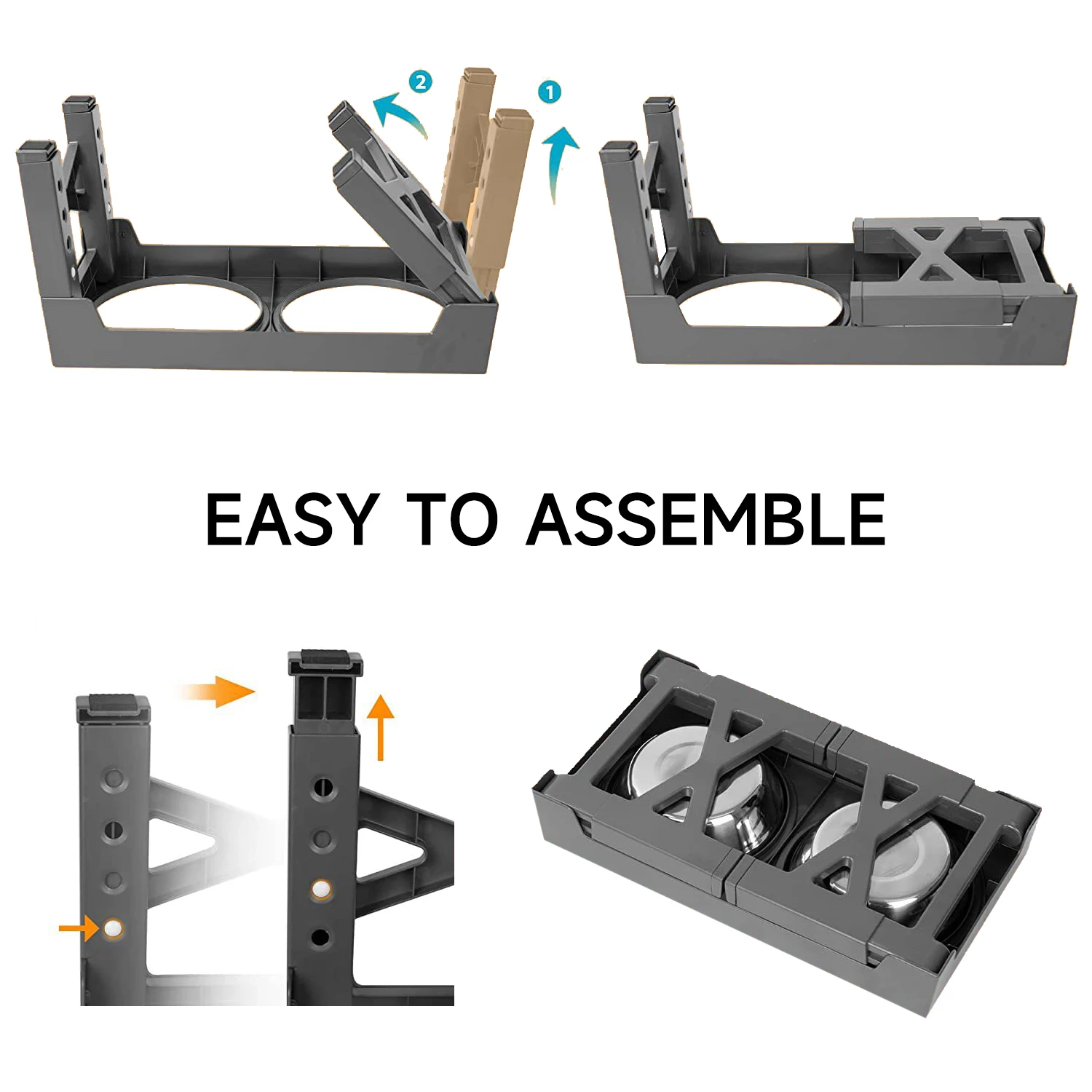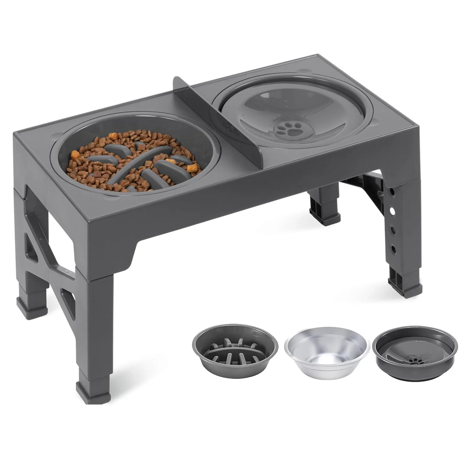 Easy to Use and Store: The legs can be easily folded and placed for clutter-free space storage.The dog bowl stand features rubber anti-skid pads and a silent strip, ensuring stability and preventing movement while eating. The design also minimizes noise from the bowl and stand colliding.