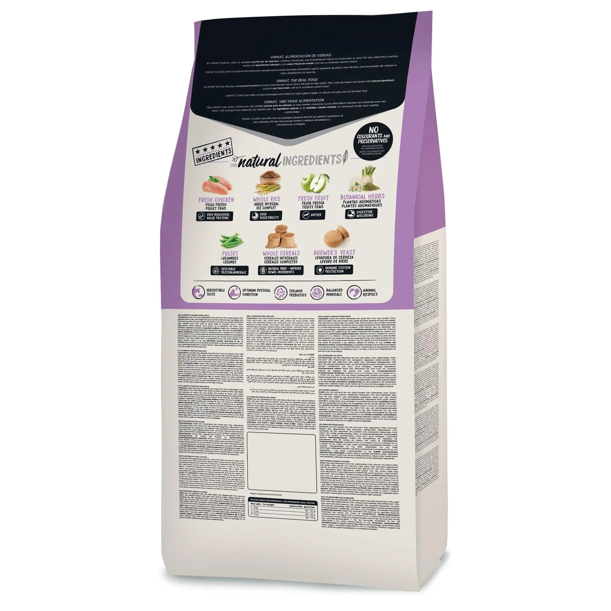 Ownat classic esterilizado cumple esa función y proporciona a tu mascota una dieta completa con abundante carne fresca y sólo ingredientes naturales, excluyendo además conservantes artificiales y colorantes. Incluye un 36% de carne además de una amplia variedad de cereales integrales, frutas y legumbres y verduras.