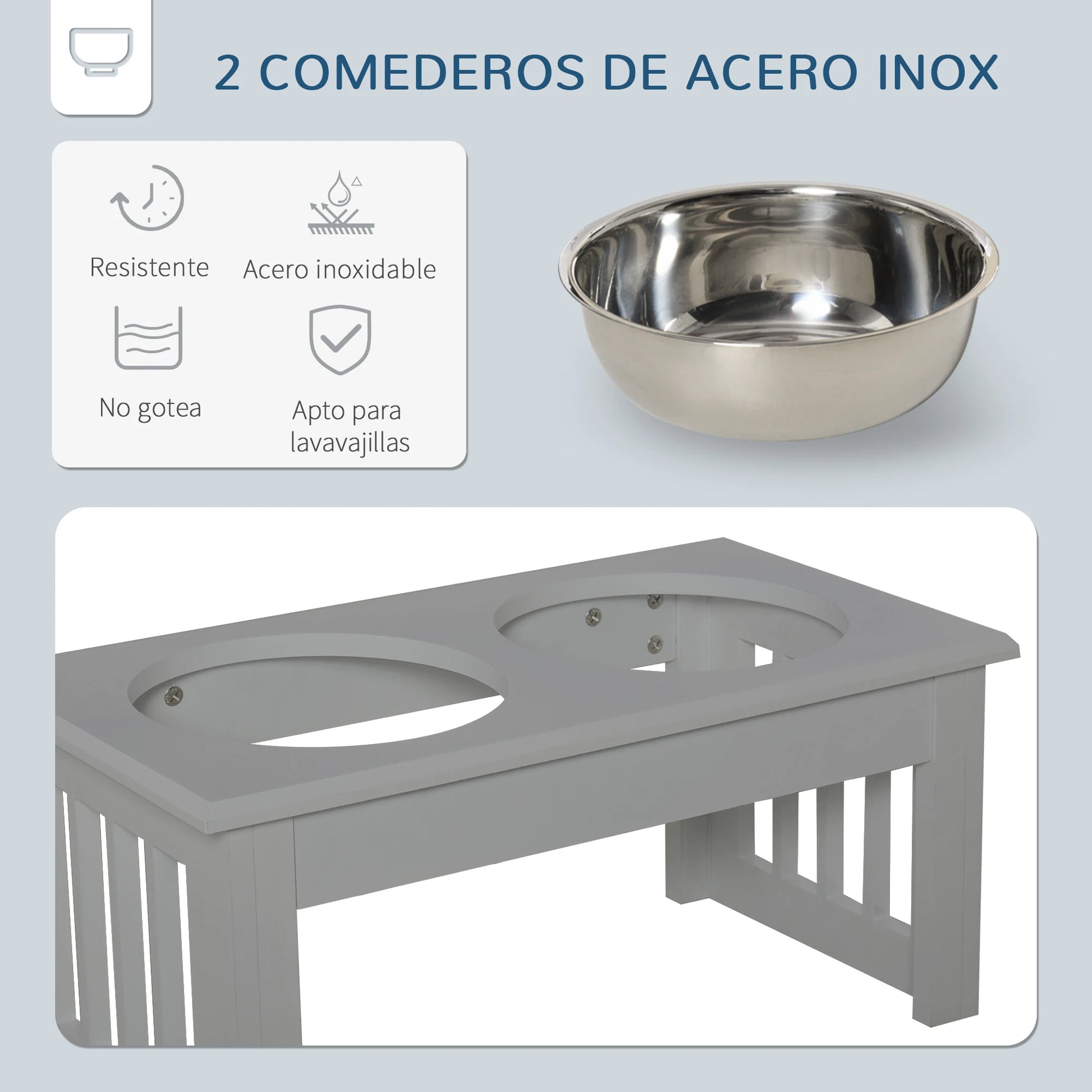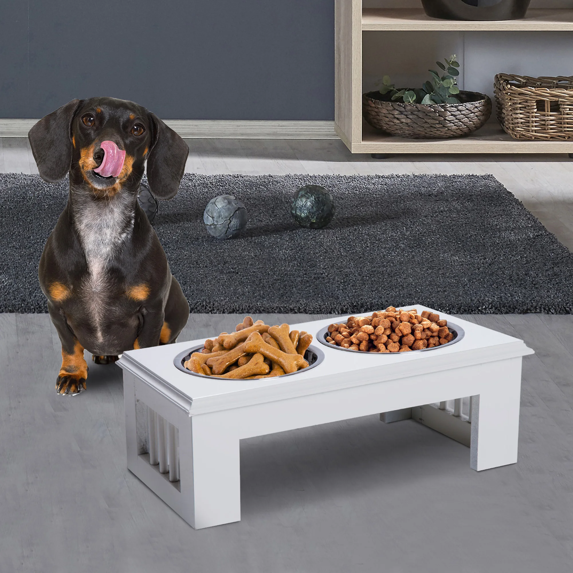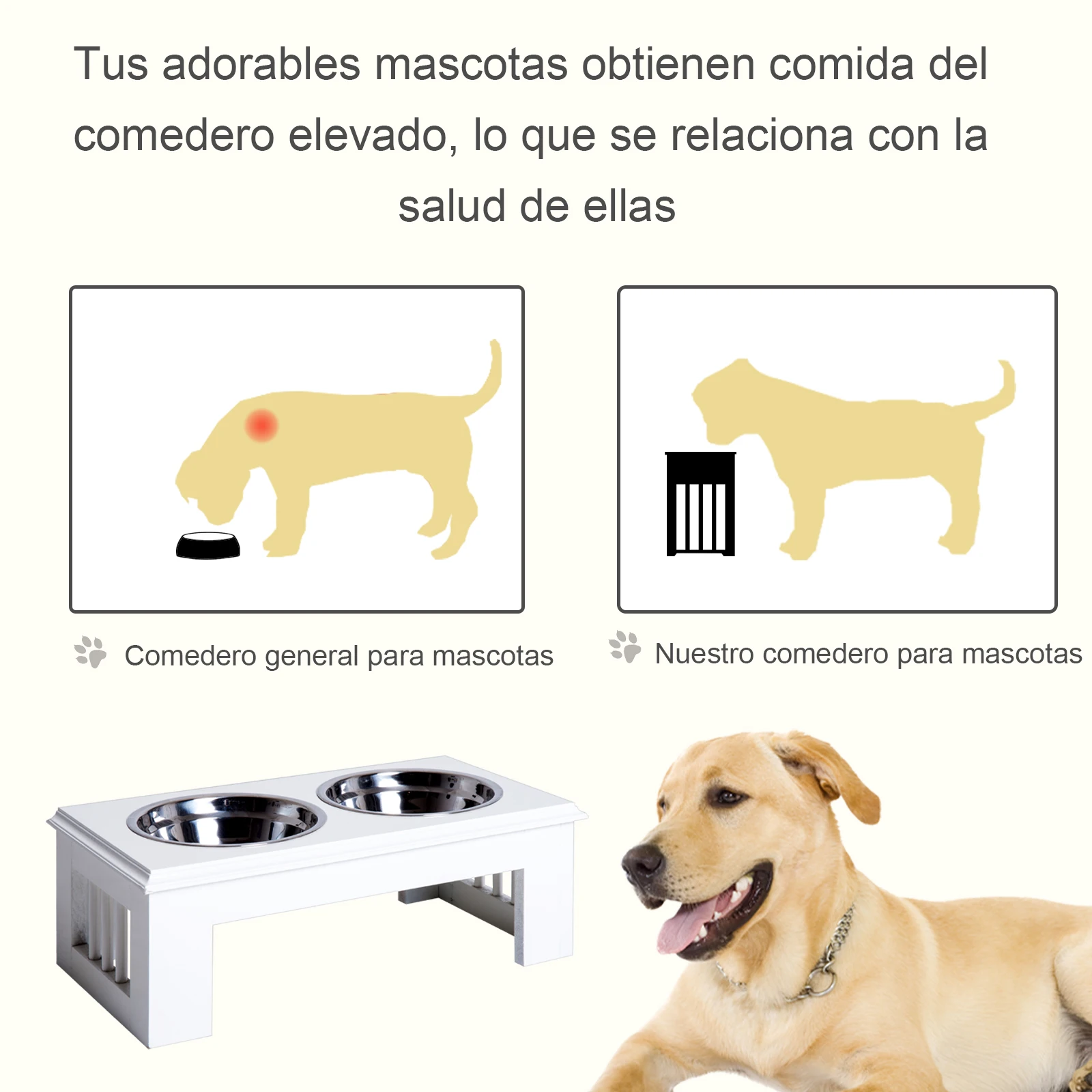 Comedero Elevado para Perros PawHut con Soporte y 2 Cuencos Extraíbles Acero Inoxidable 44x24x15 cm Blanco