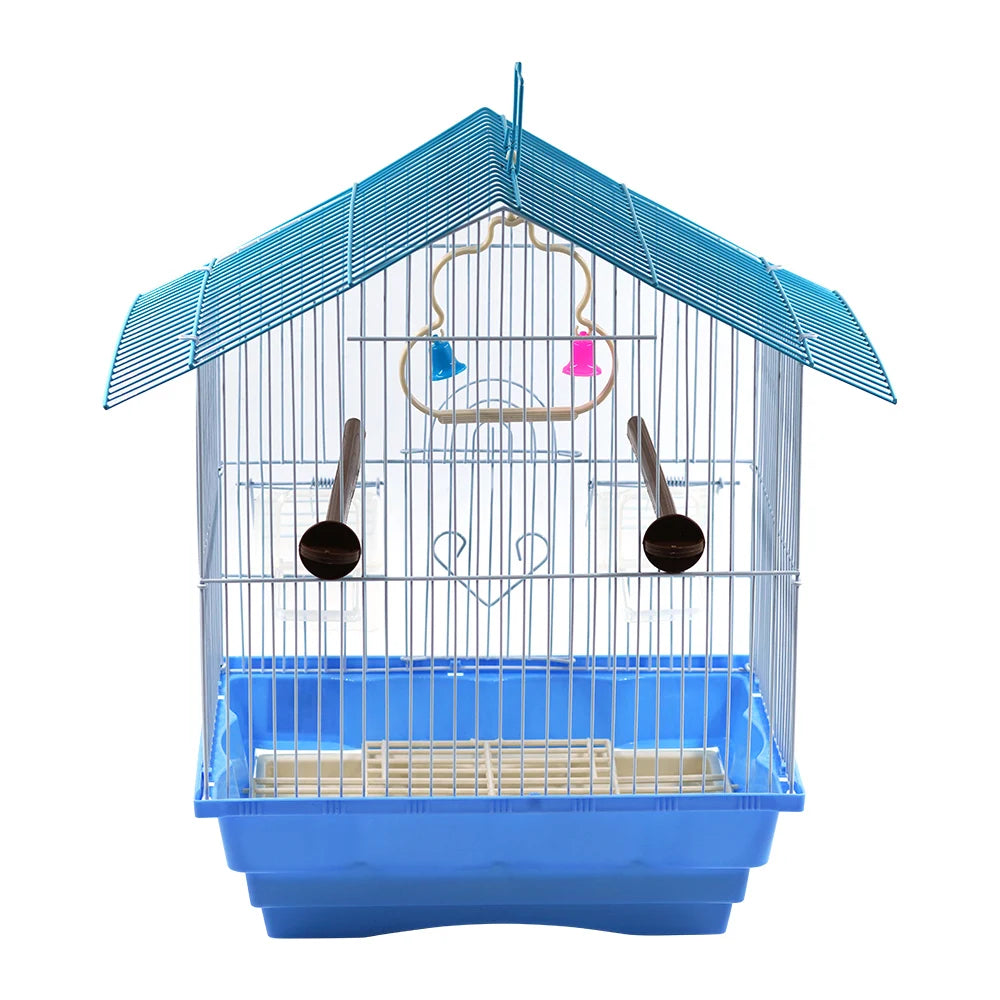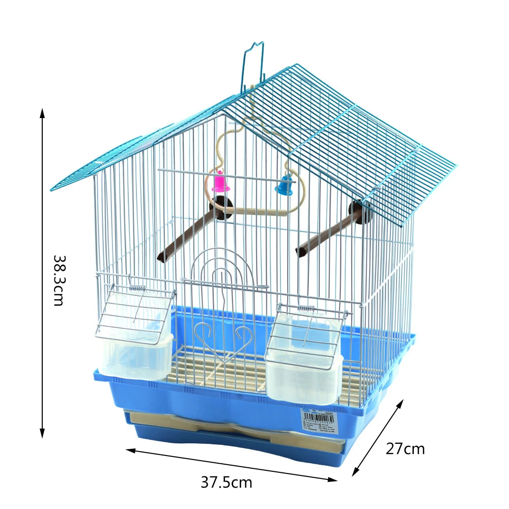 SMELL & SMILE Accesorios para jaulas de pájaros – Jaula con comederos, columpio, percha. 37.5x27x38.3 cm. Para interior y exterior, colgable.