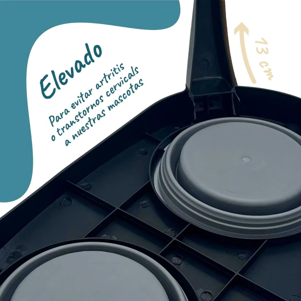 2 en 1: Ofrecemos el comedero elevado definitivo para perros. Incluye un comedero elevado grande para una alimentación lenta y un bebedero antigoteo.